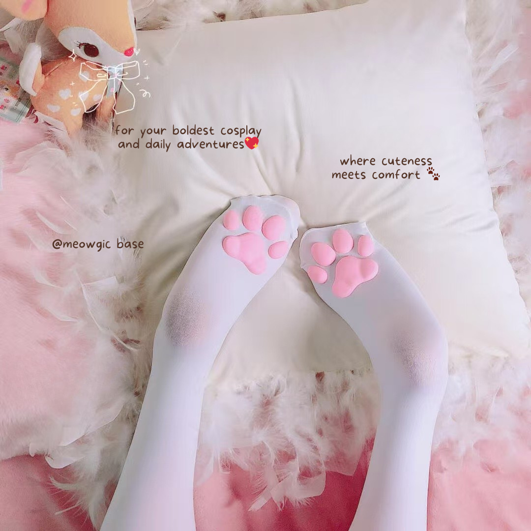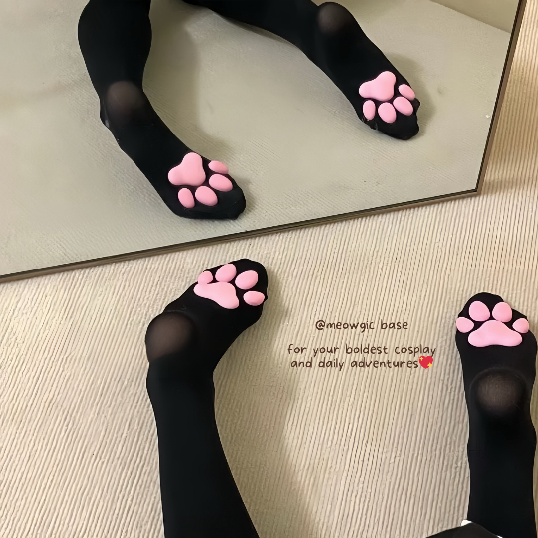3D Cat Paw Thigh High Socks - Kawaii & Cosplay Style